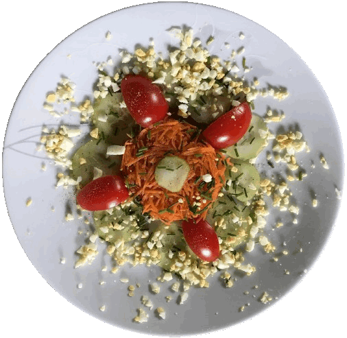 Et j'ai persévéré depuis dans la création d’assiettes aussi bien présentées que possible, avec le contenu de mon frigo et de mes placards et le matériel d’amateur dont je dispose.