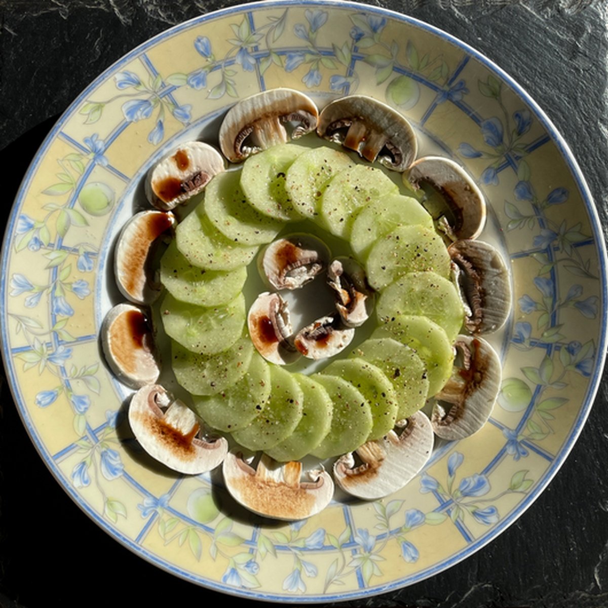 | Bâtonnets de concombre, champignons de Paris, roquette |