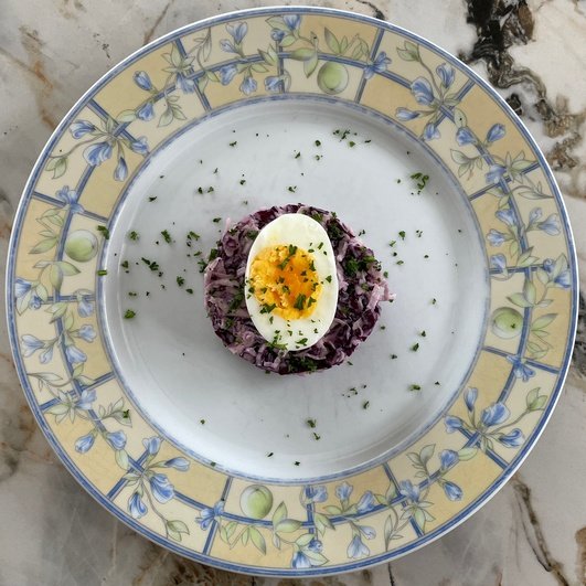 Céleri-rémoulade, œuf dur et cerneaux de noix |
