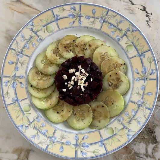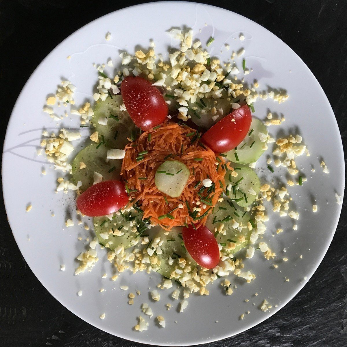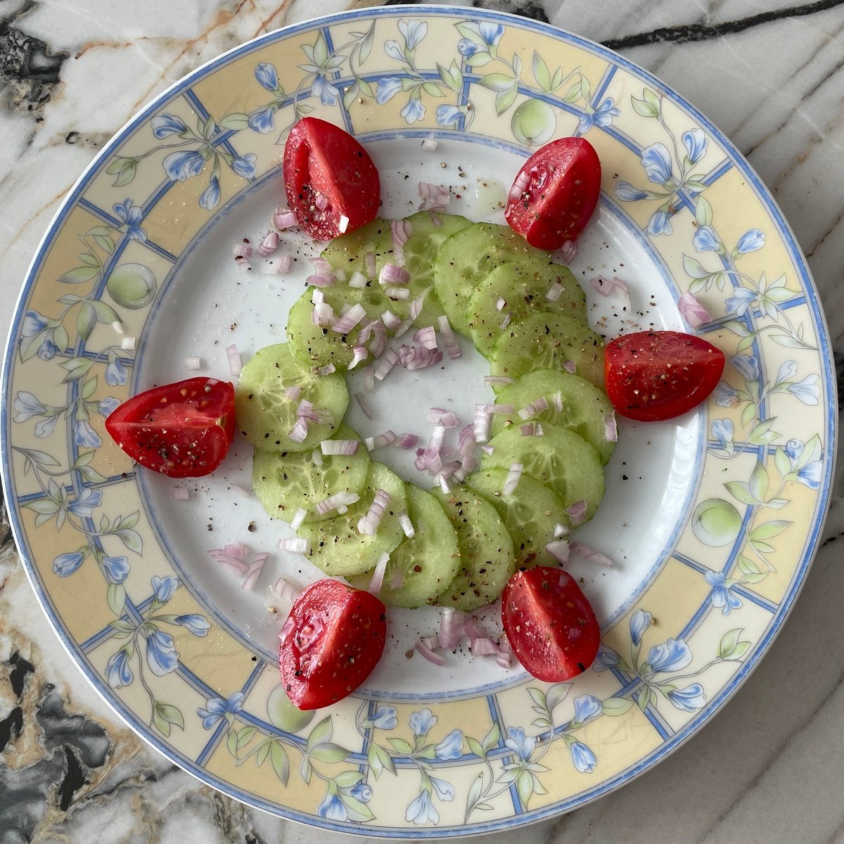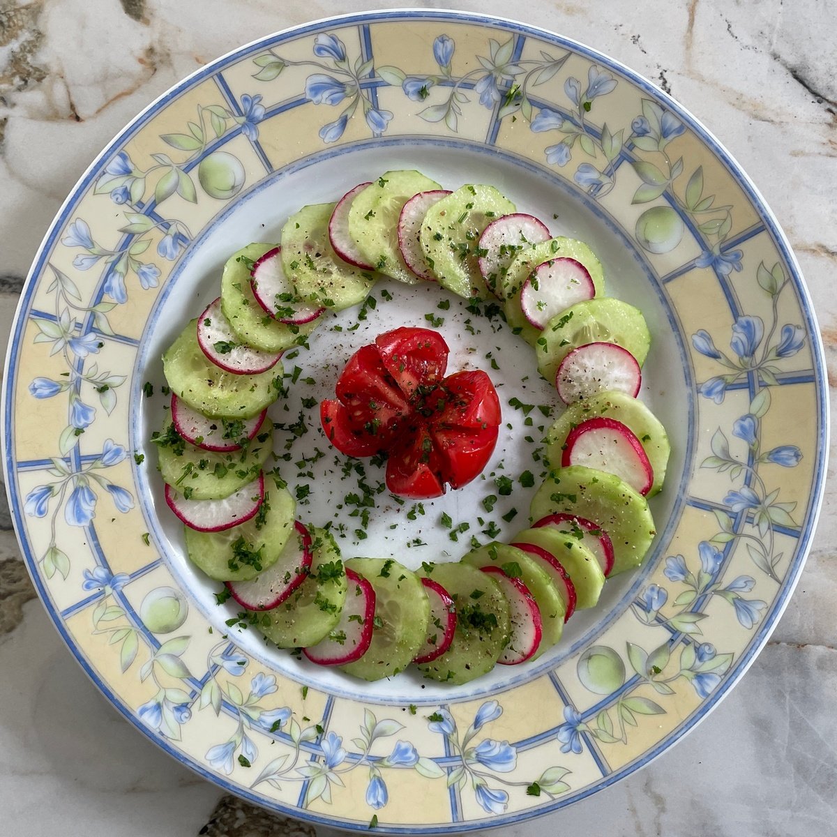 | Bâtonnets de concombre, champignons de Paris, roquette |