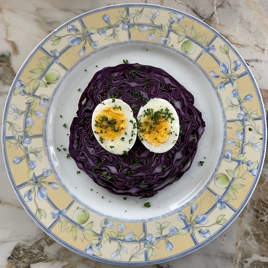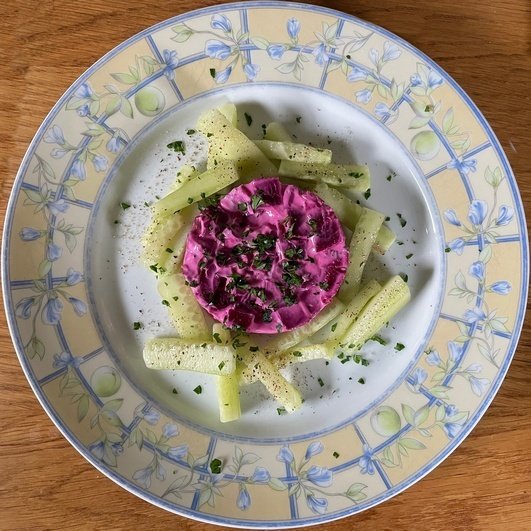 Céleri-rémoulade, œuf dur et cerneaux de noix |